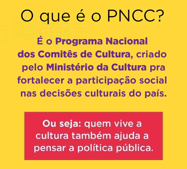 O PNCC é uma política pública que busca reconstruir o diálogo entre o Estado e a sociedade civil, fortalecendo o Sistema Nacional de Cultura e promovendo a descentralização das ações culturais.